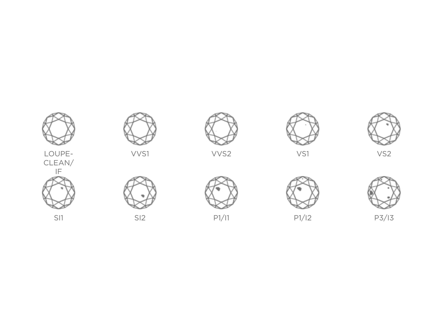 Diamonds can contain external or internal imperfections known as blemishes and inclusions. Clarity is evaluated on the degree of which these imperfections are visible. Diamond imperfections are often difficult to see with the naked eye, however significant imperfections may affect brilliance.