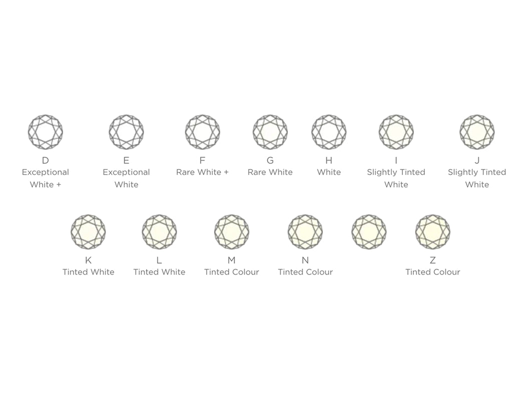 (Colourless) to Z (Tinted colour). Colourless diamonds (D - F) will