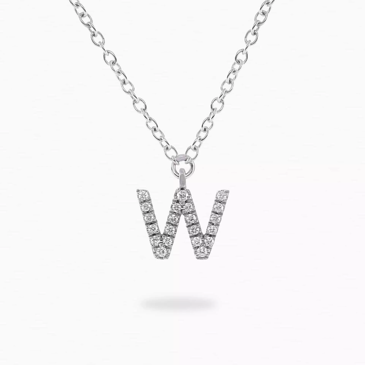 18ct white gold diamond initial “W” necklace