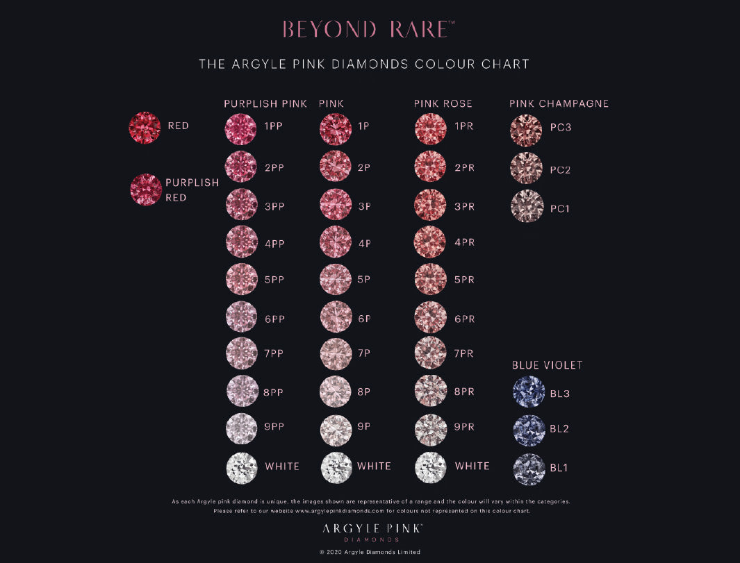 There are three important factors to understanding the colour of pink diamonds: hue, tone and saturation.