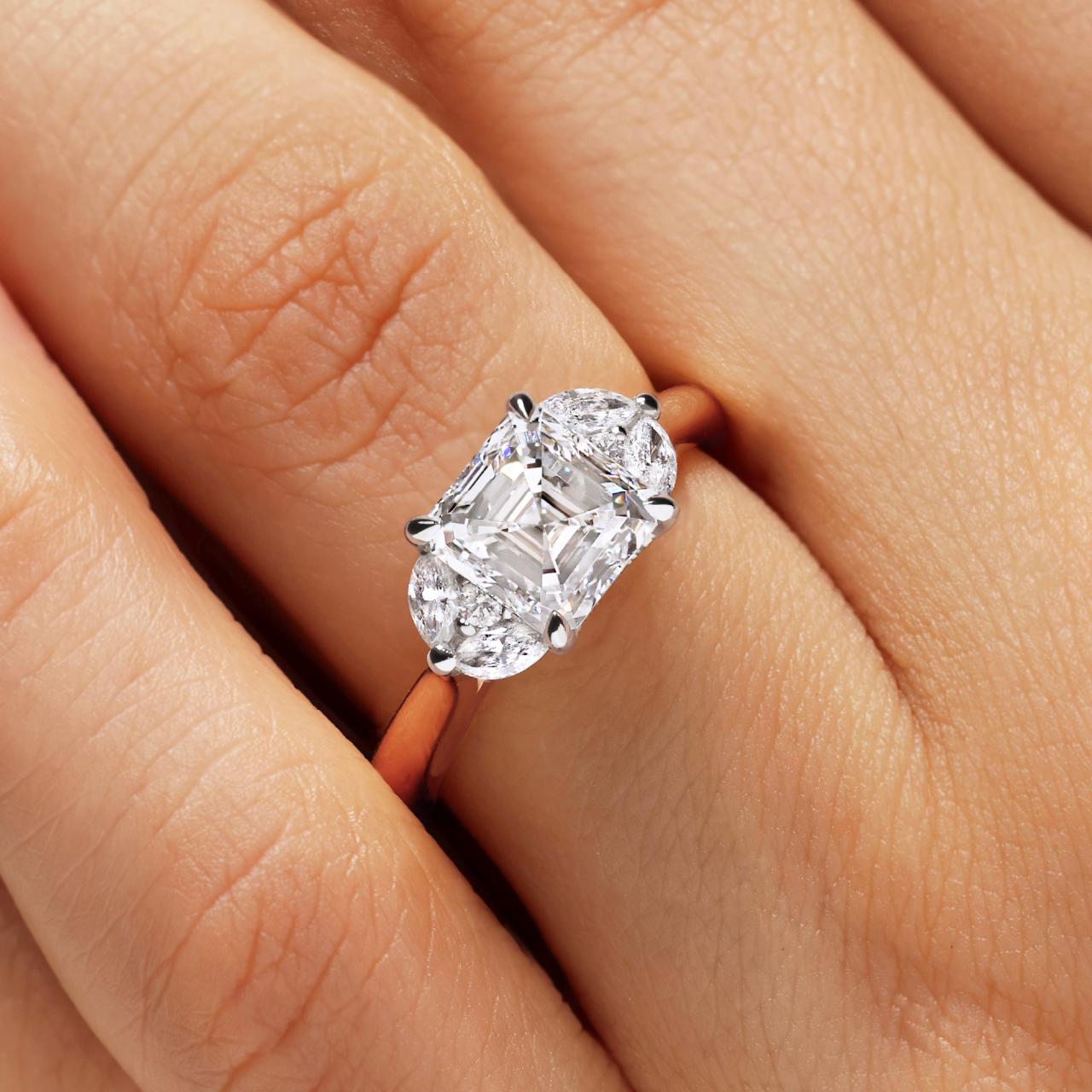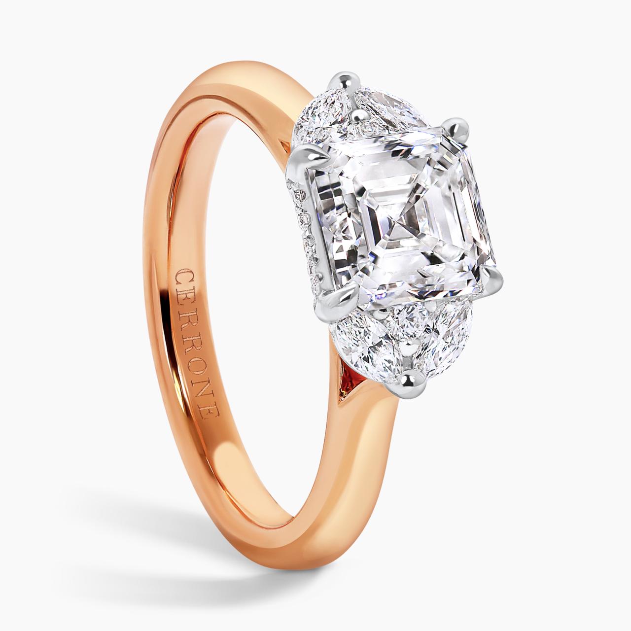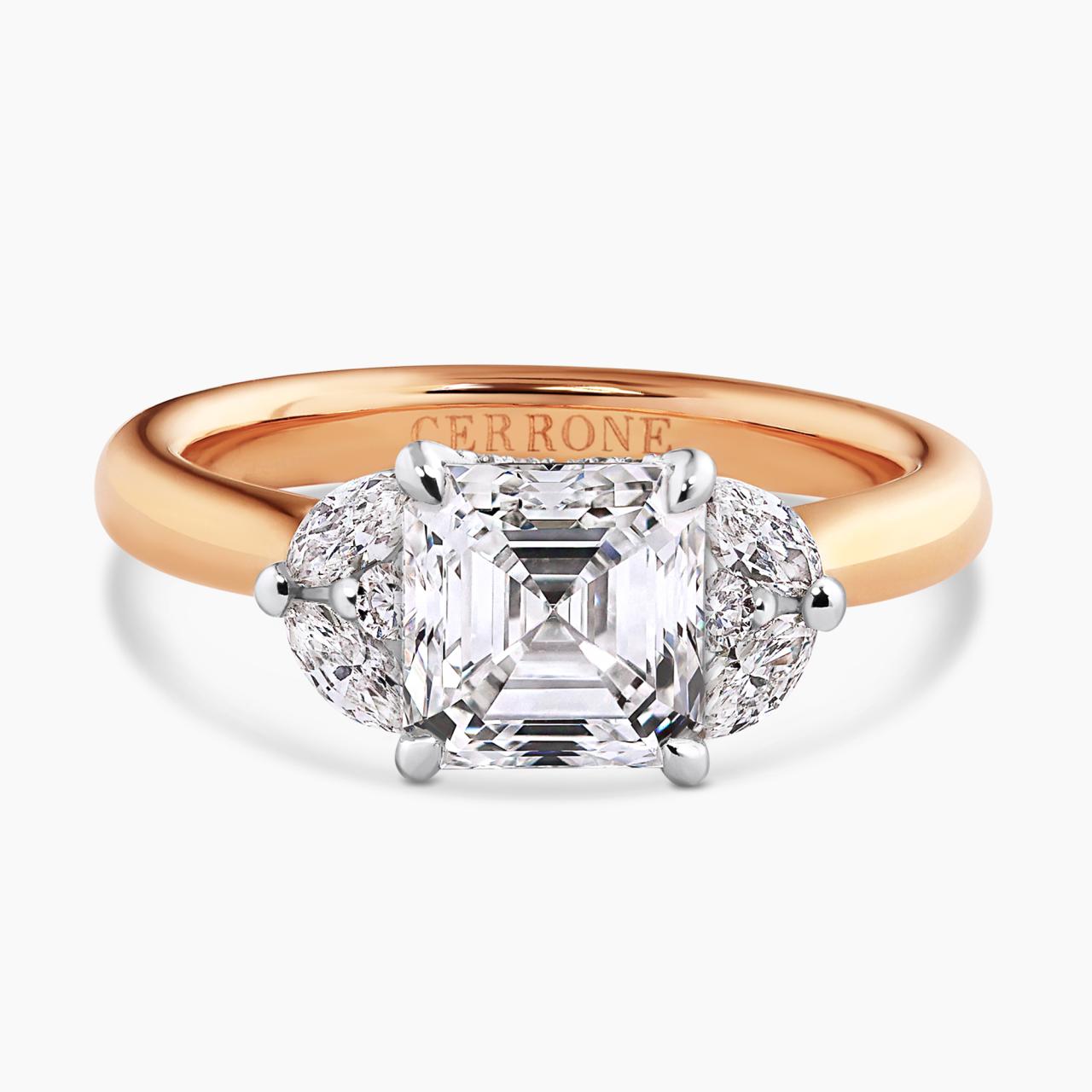 GIOIA - 18ct rose and white gold 1.90ct Asscher cut diamond ring with marquise and round brilliant cut diamonds