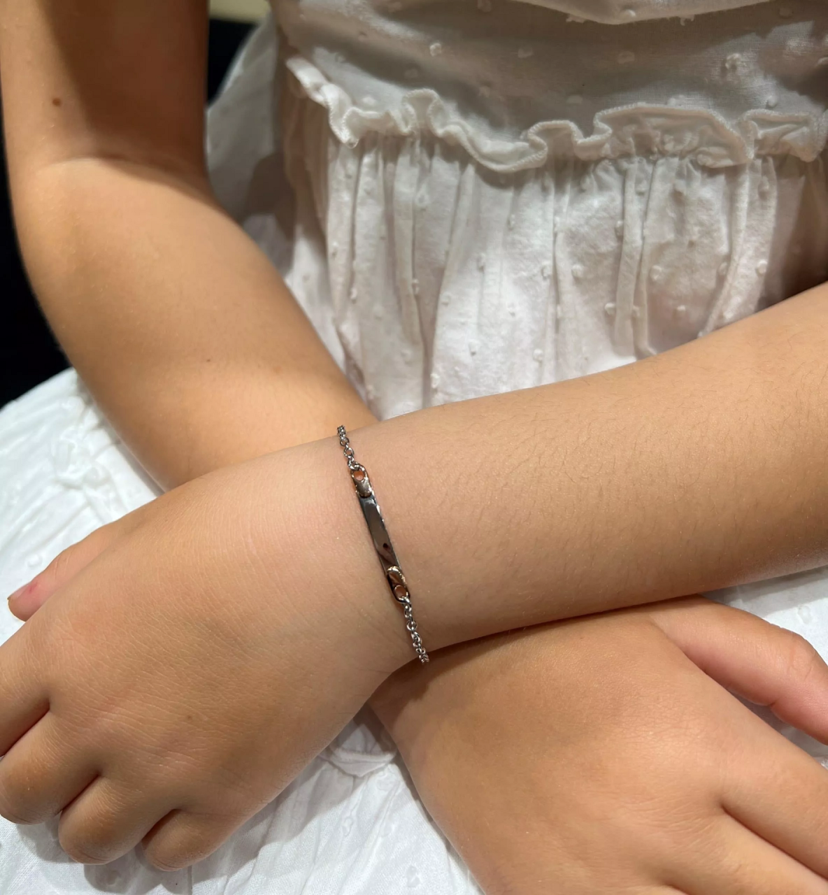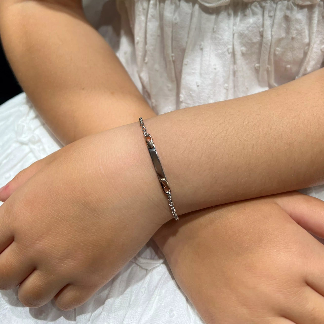 18ct white and rose gold ID tag baby bracelet