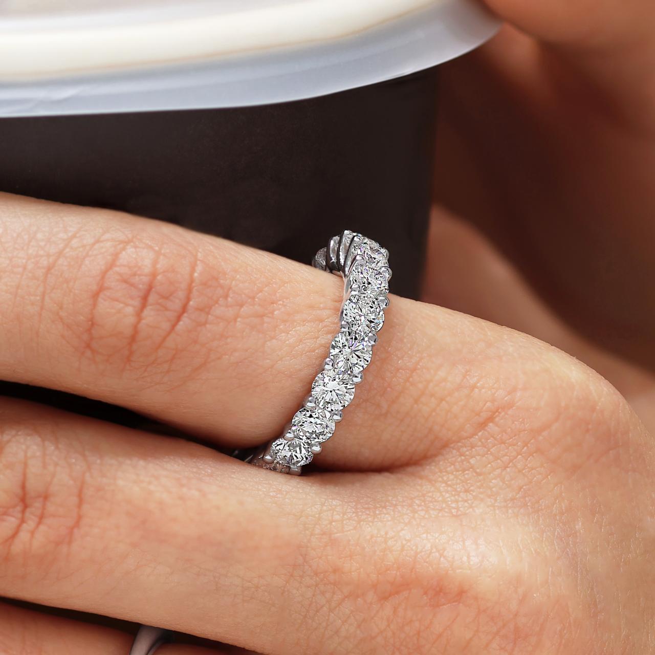 18ct white gold 19=4.45ct RBC diamond ring. Features round brilliant cut diamonds in a claw setting all around the band. Ring size L