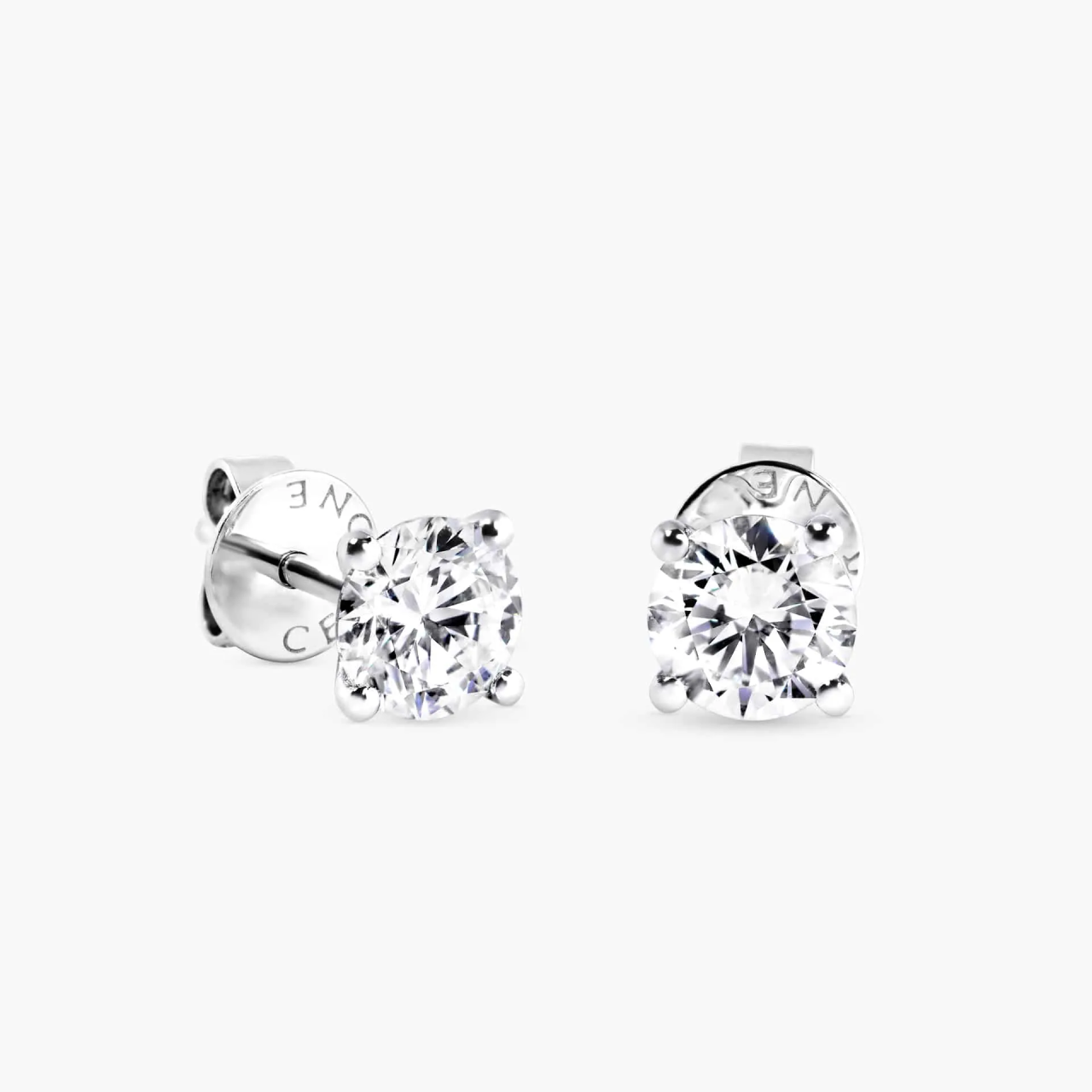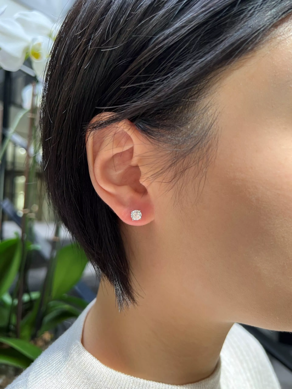 18ct white gold 2=1.40ct diamond stud earrings feature round brilliant cut diamonds in a four claw setting. GIA certified