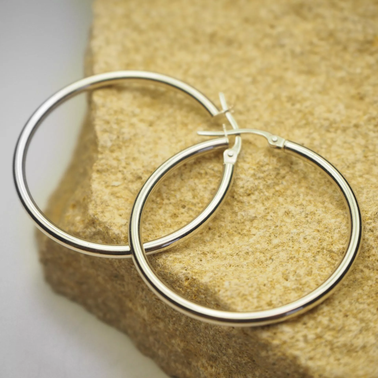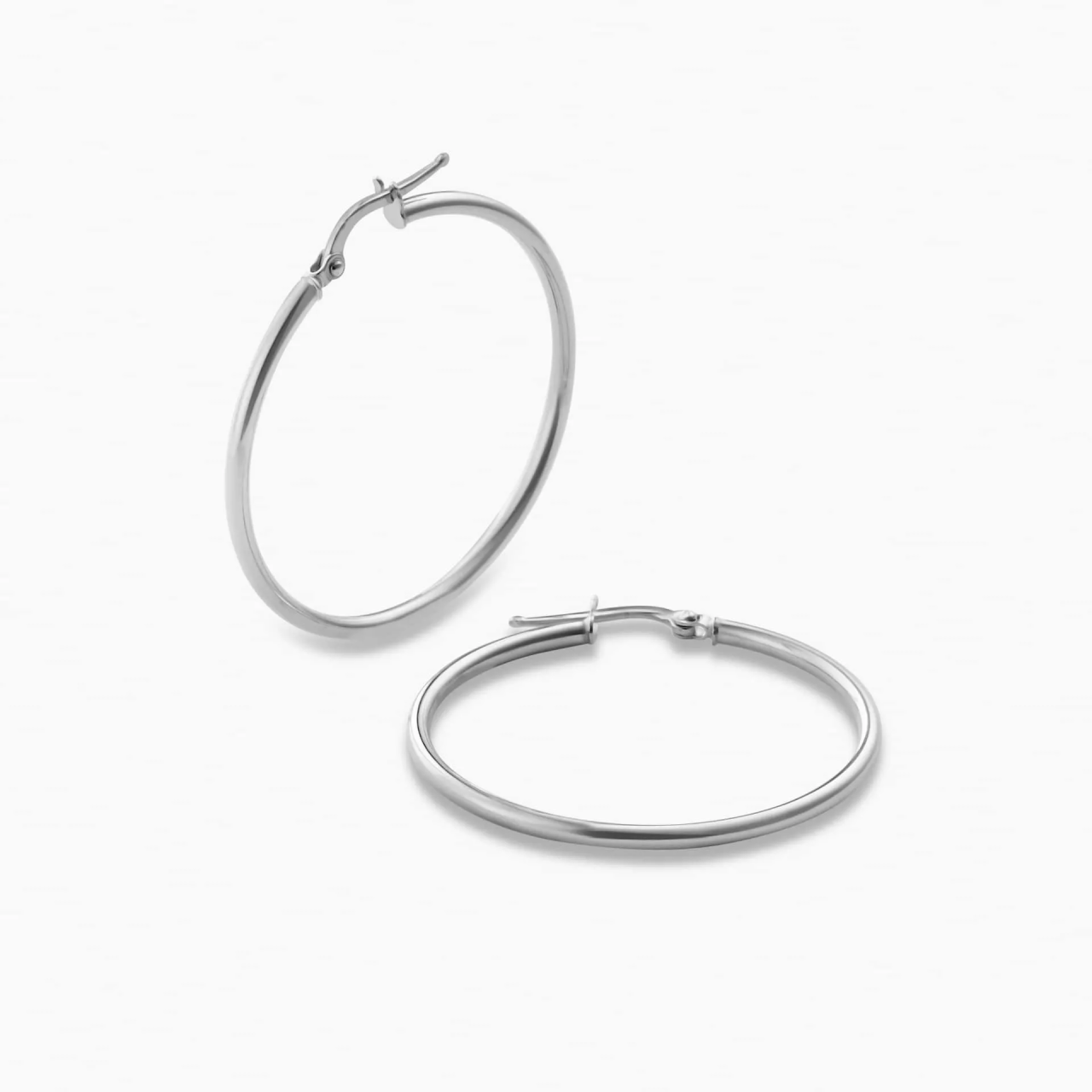 18ct white gold 30mm hoop earrings. Diameter 30mm / Width (thickness) of earring= 2mm