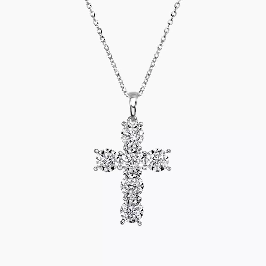 18ct white gold 6=0.58ct diamond cross necklace