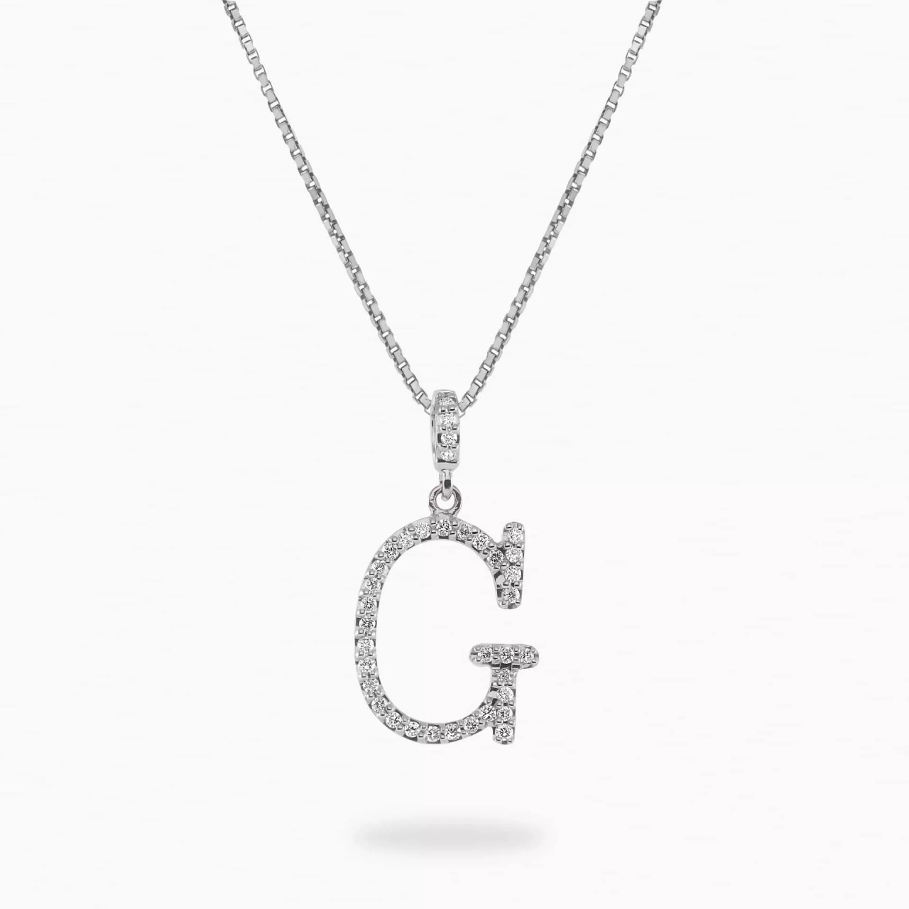 18ct White gold diamond initial ‘G’ necklace. TDW= 0.13ct