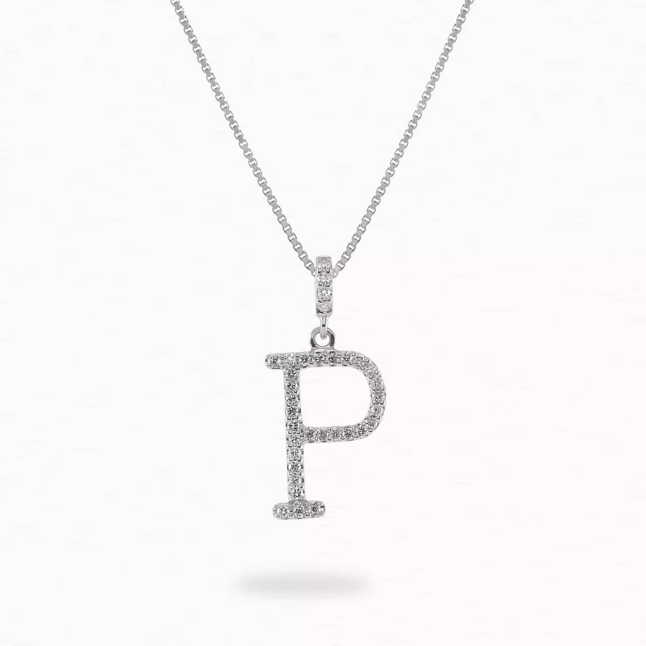 18ct White gold diamond initial ‘P’ necklace. TDW= 0.12ct