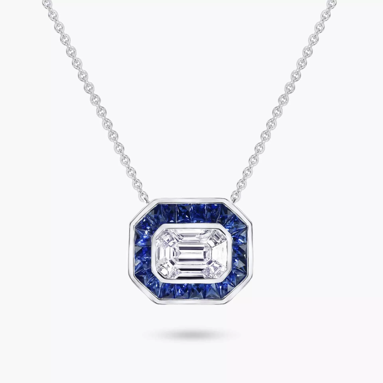 18ct white gold sapphire and diamond necklace. 9=0.39ct diamonds and 22=1.33ct sapphires