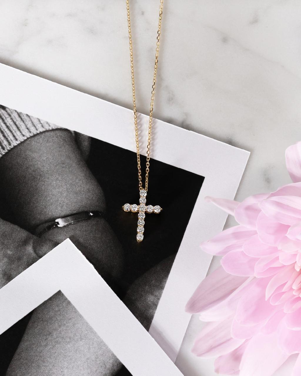 18ct yellow gold 11=0.25ct diamond cross necklace