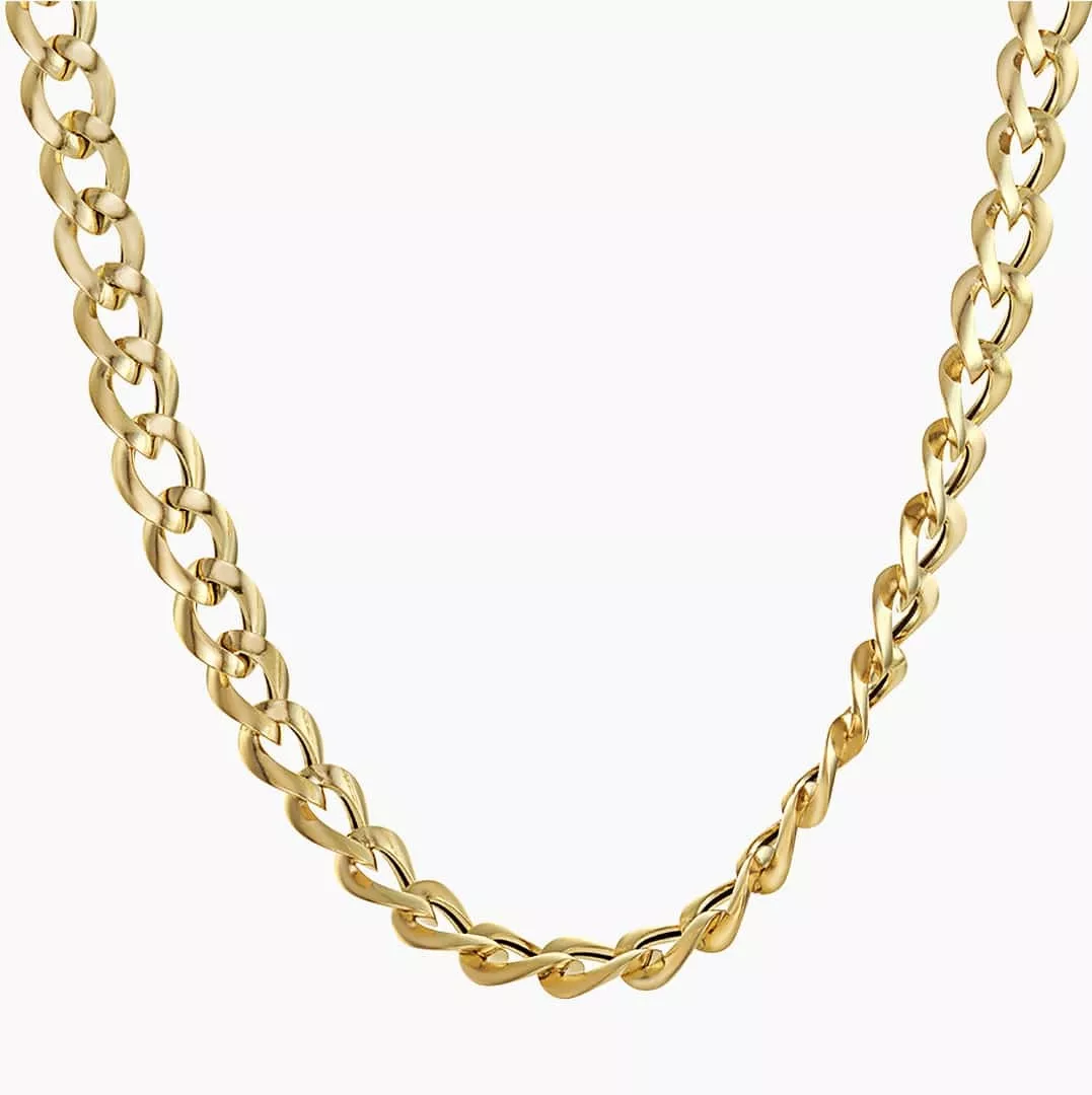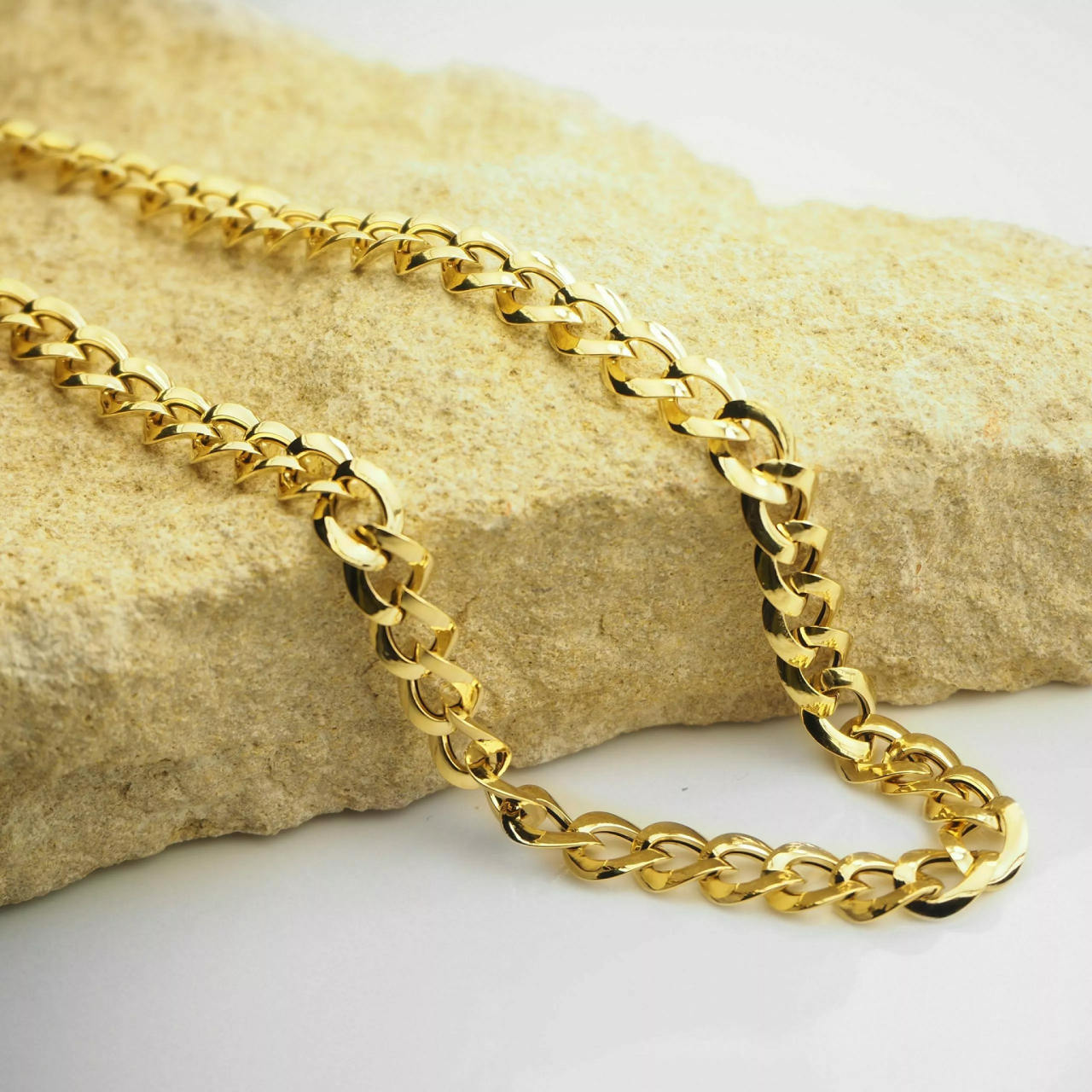 18ct yellow gold 42cm curb link chain with lobster clasp. Thickness=8mm. Note: this is hollow