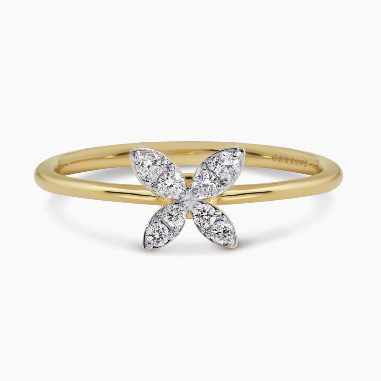 18ct yellow gold diamond claw set flower ring. D=0.15ct. Ring size M. Flower size H 7 x W 7 mm.
