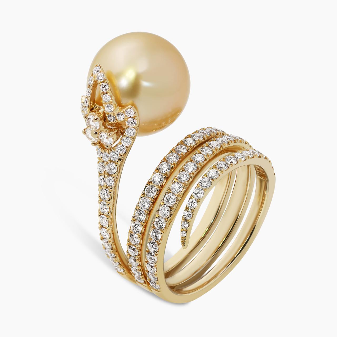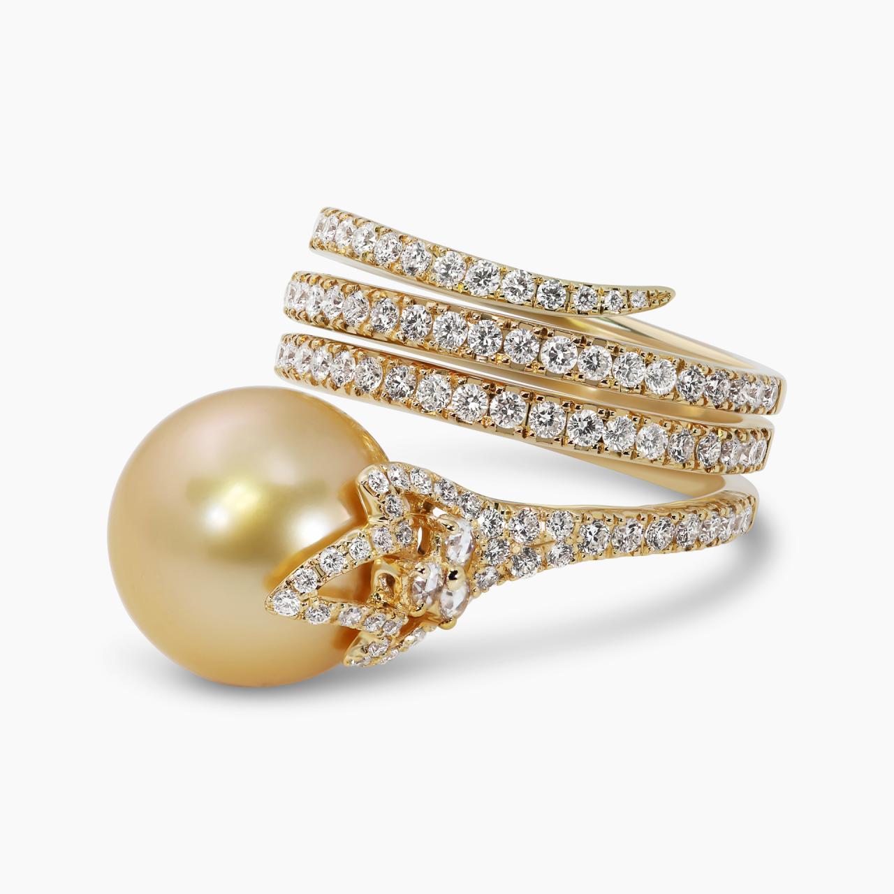 18ct Yellow Gold Diamond & Golden South Sea Pearl Ring
