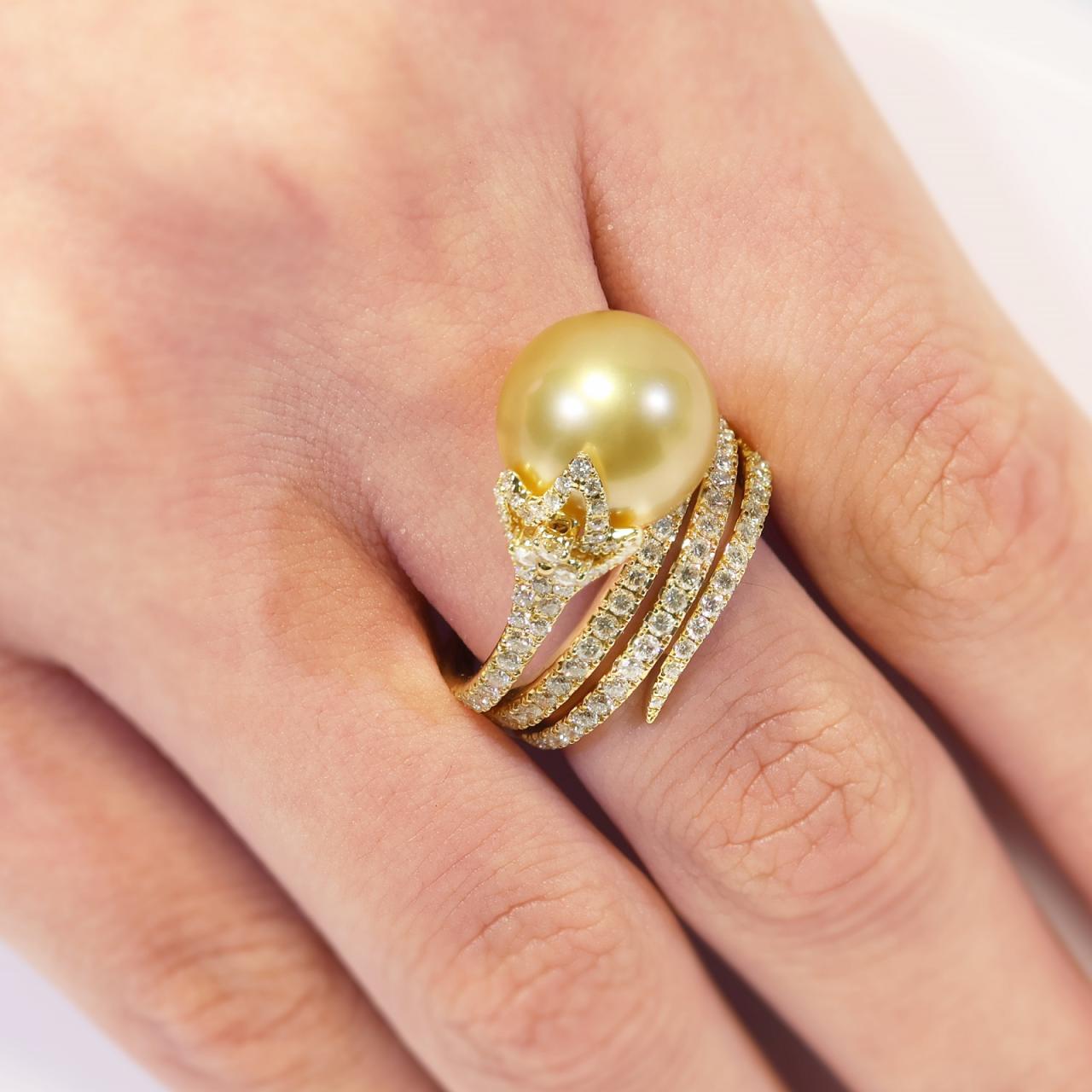 18ct Yellow Gold Diamond & Golden South Sea Pearl Ring. 100=1.05ct , SSP=11mm