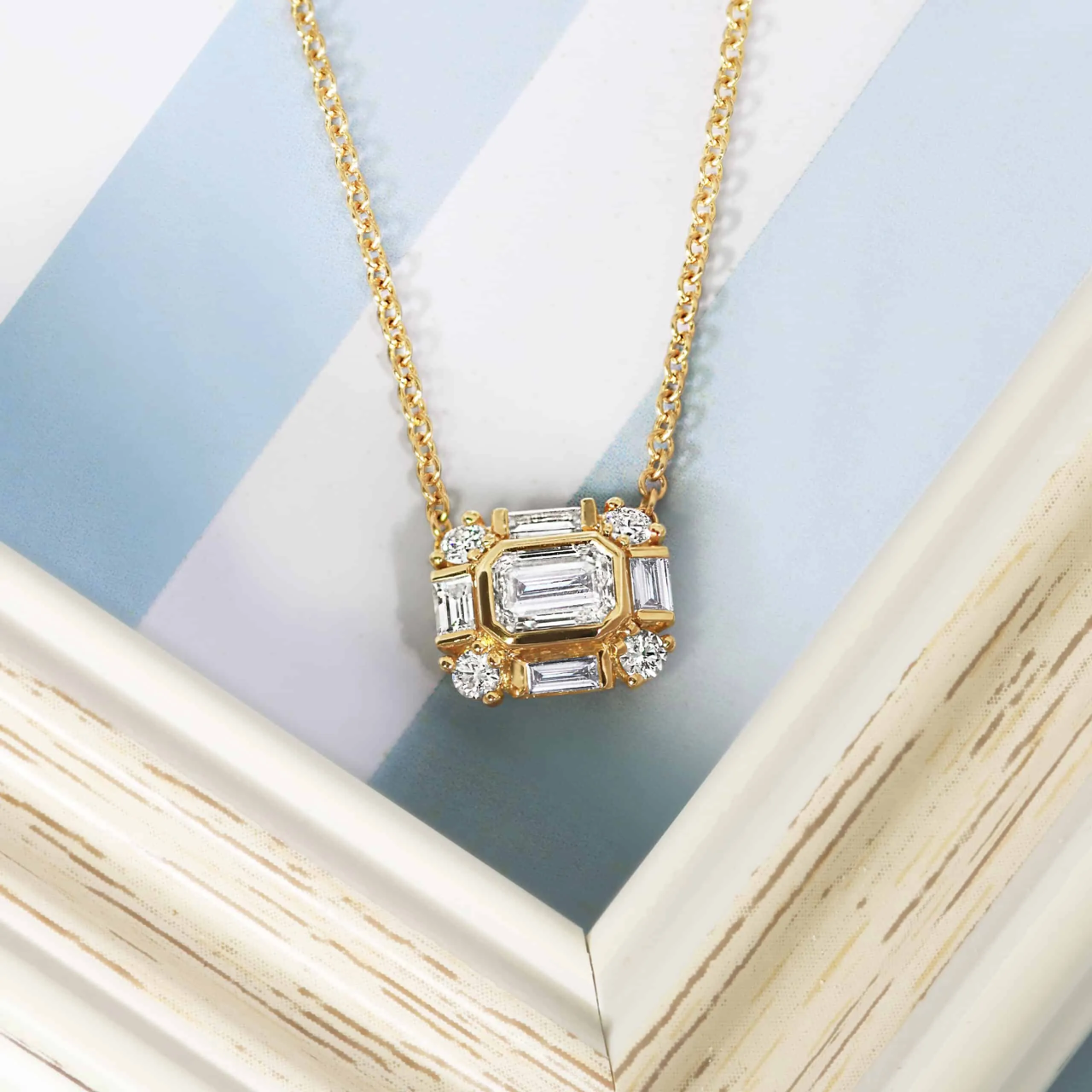 18ct yellow gold emerald cut diamond necklace from the Hampton Collection