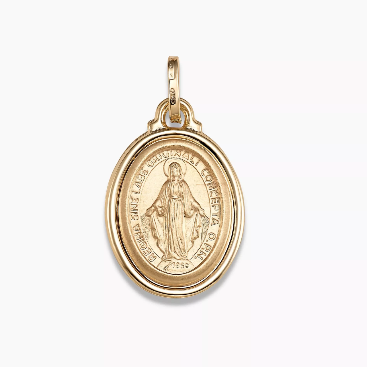 18ct yellow gold miraculous religious medal pendant 2.5cm