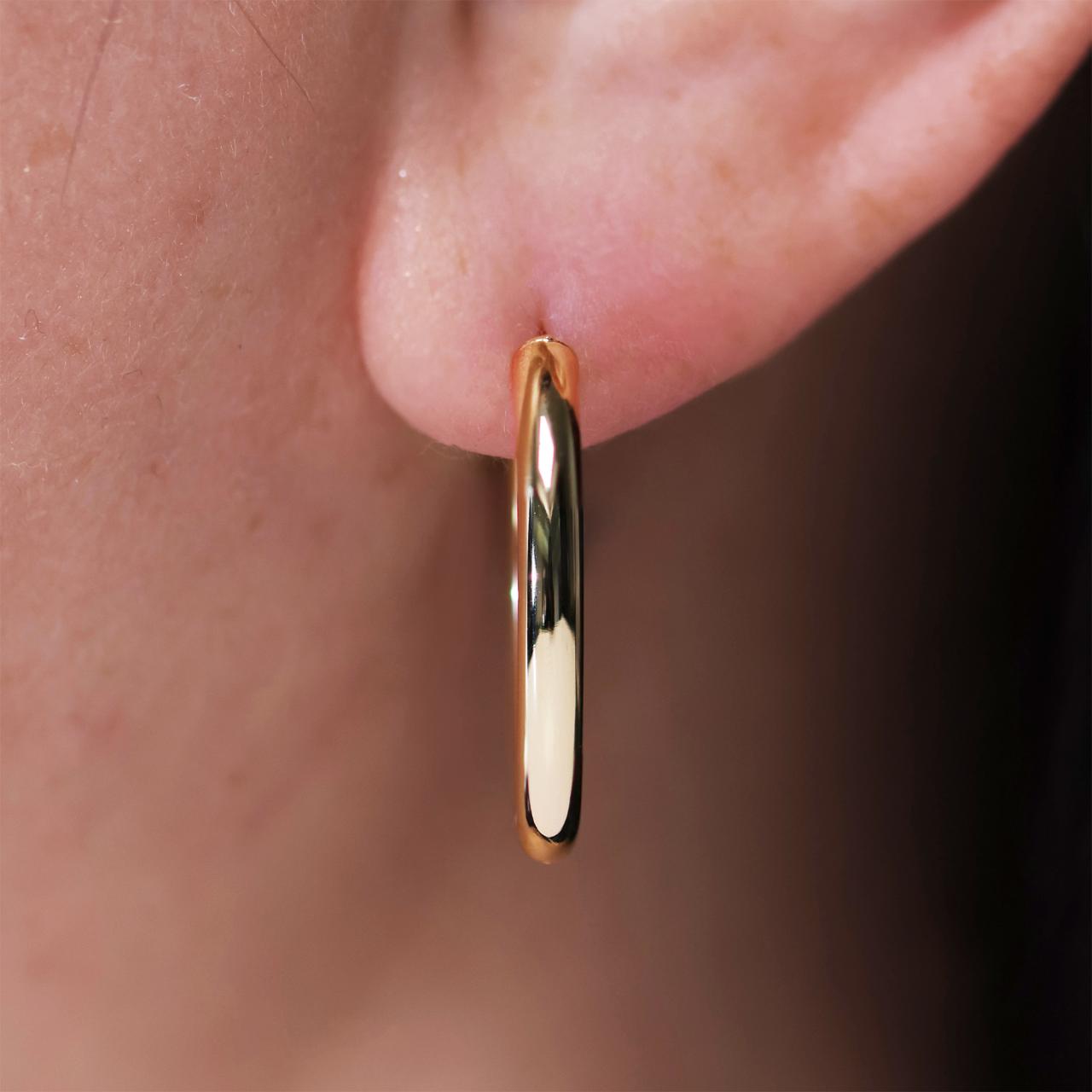 18ct yellow gold oval hinge hoop earrings. Item size 20x15mm, width 3mm