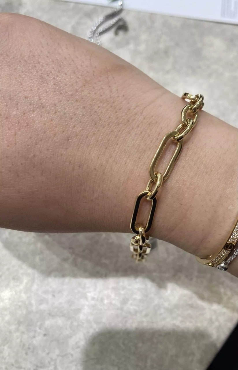 18ct yellow gold paperclip link bracelet. Length= 21cm