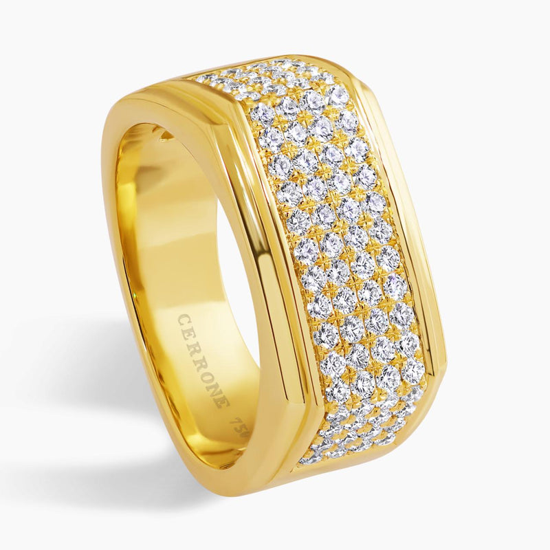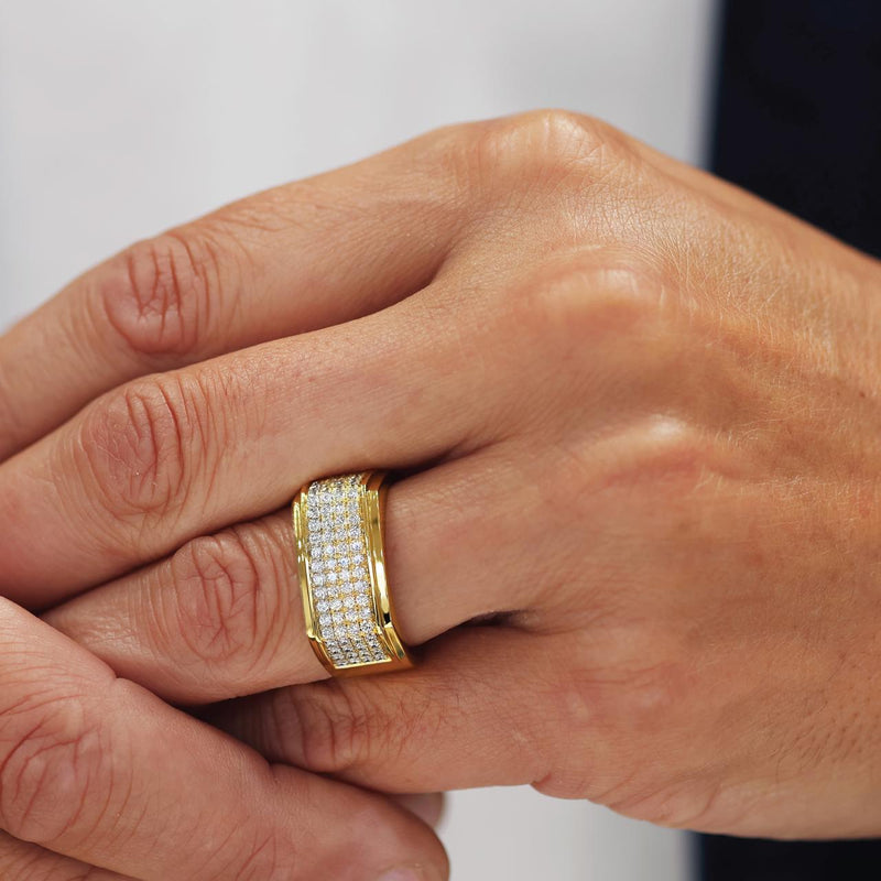 18ct yellow gold round brilliant cut pave diamonds mens ring