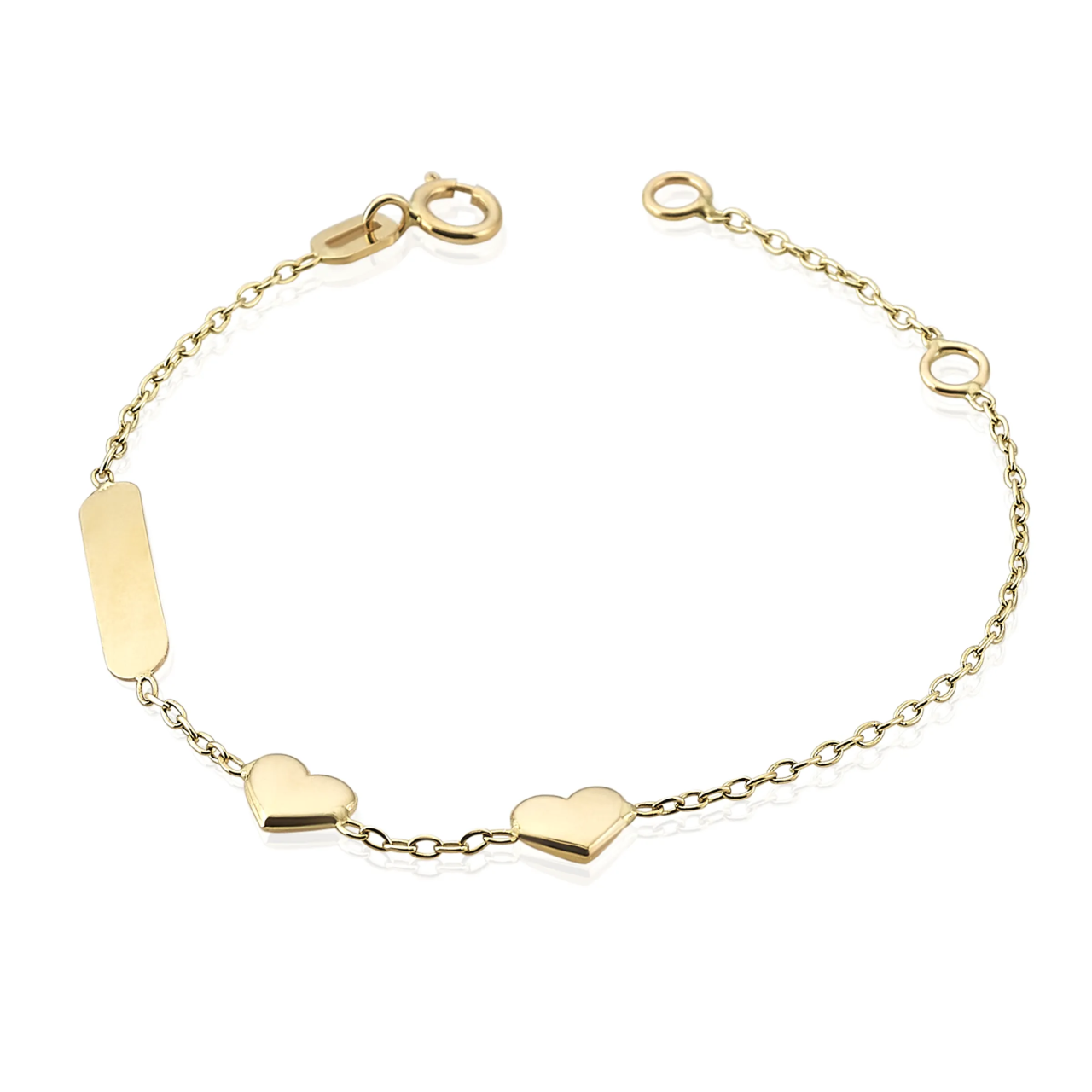 18ct Yellow Gold two Hearts & ID Baby Bracelet