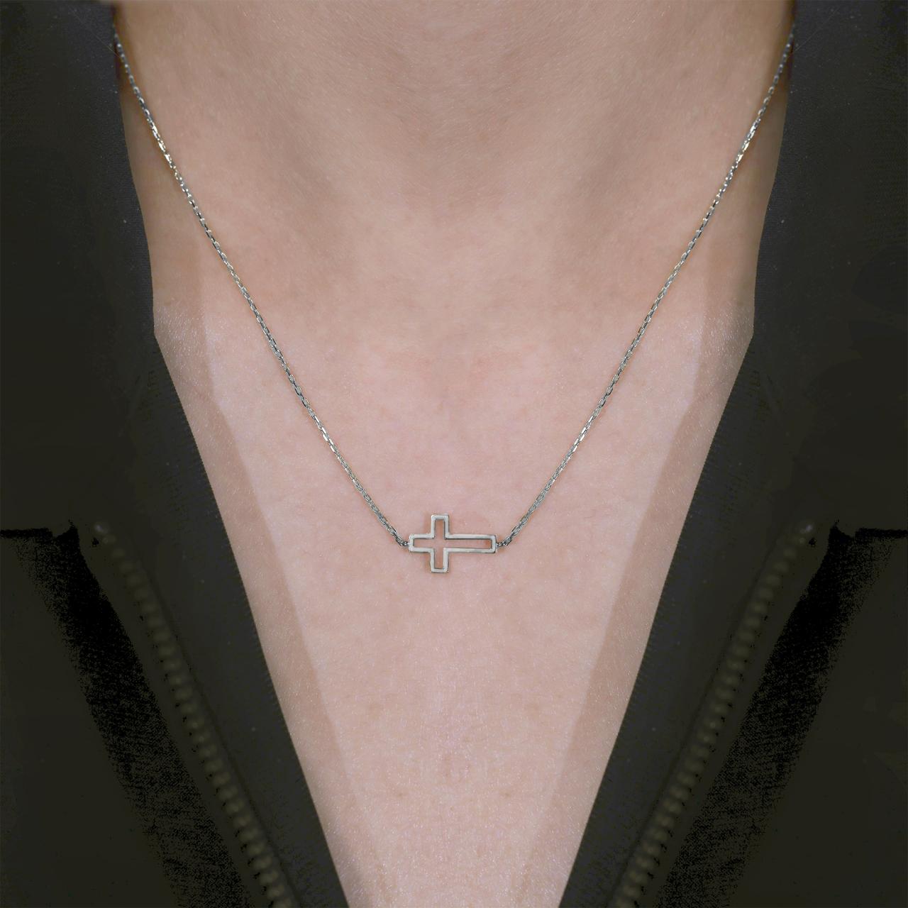 18ct white gold cross on chain necklace