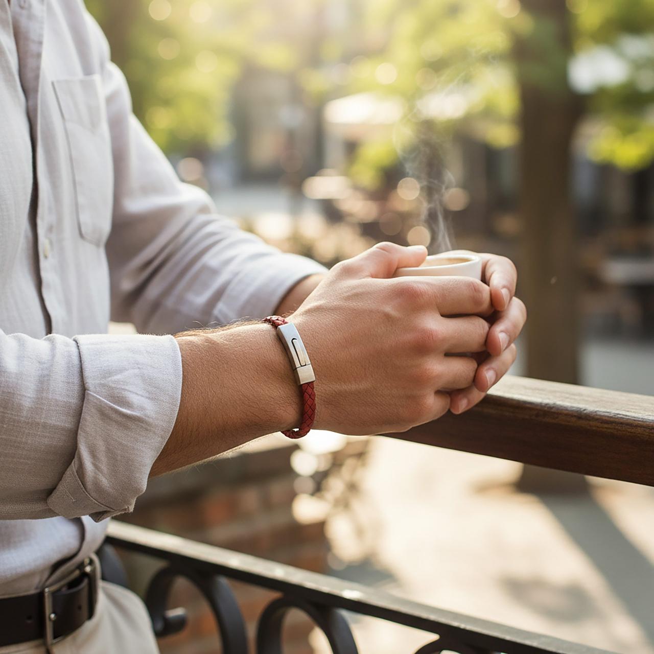 Braided Suede & Steel Calabria Bracelet Flame Red