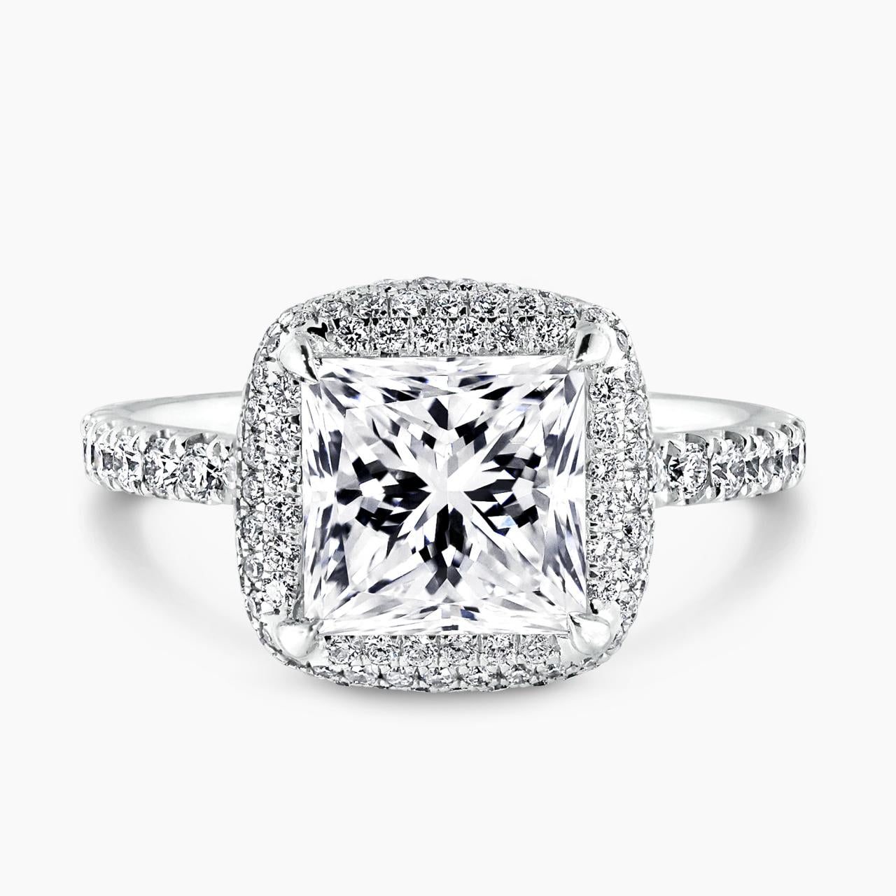 18ct white gold 2.79ct princess cut diamond ring. Featuring 142=0.83ct round brilliant cut diamonds. Ring size L. GIA Cert