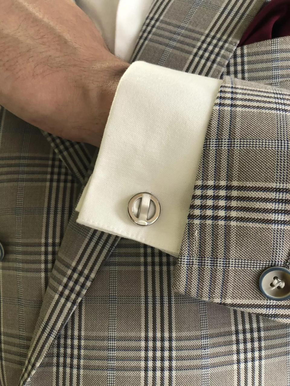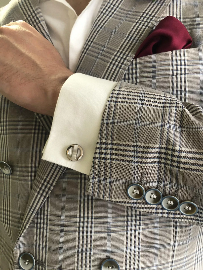 Stainless steel rhodium plated open circle matt and polished finish cufflinks